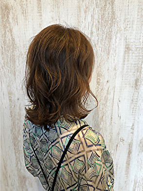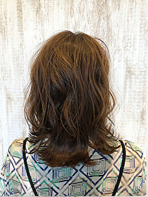 毛先をワンカール、表面をランダムにルーズに巻いて